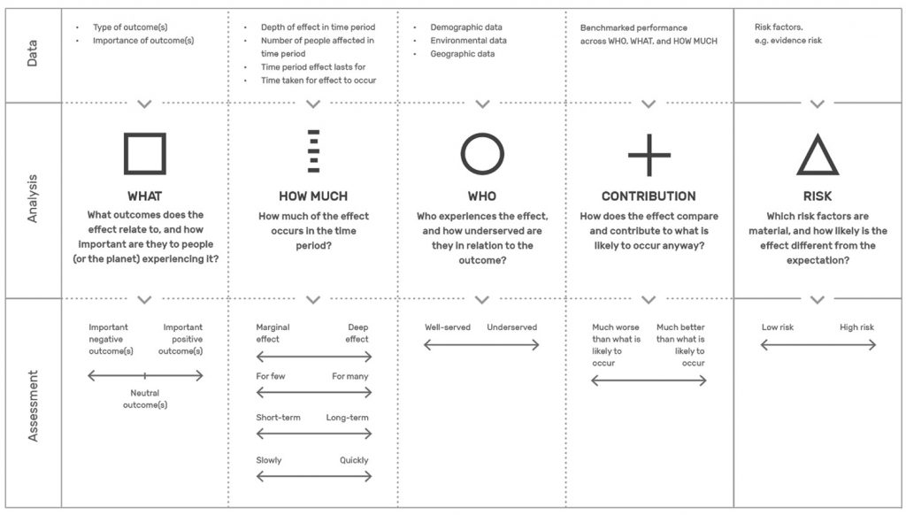 One of the best resources for getting to grips with âimpactâ is the âImpact Management Projectâ, a collaborative effort of more than 700 organisations to establish shared fundamentals for how we talk about, measure and manage impact. Alongside strategic frameworks and toolkits, they articulate some key questions that an impact investor should ask to bring rigour to their decision making.