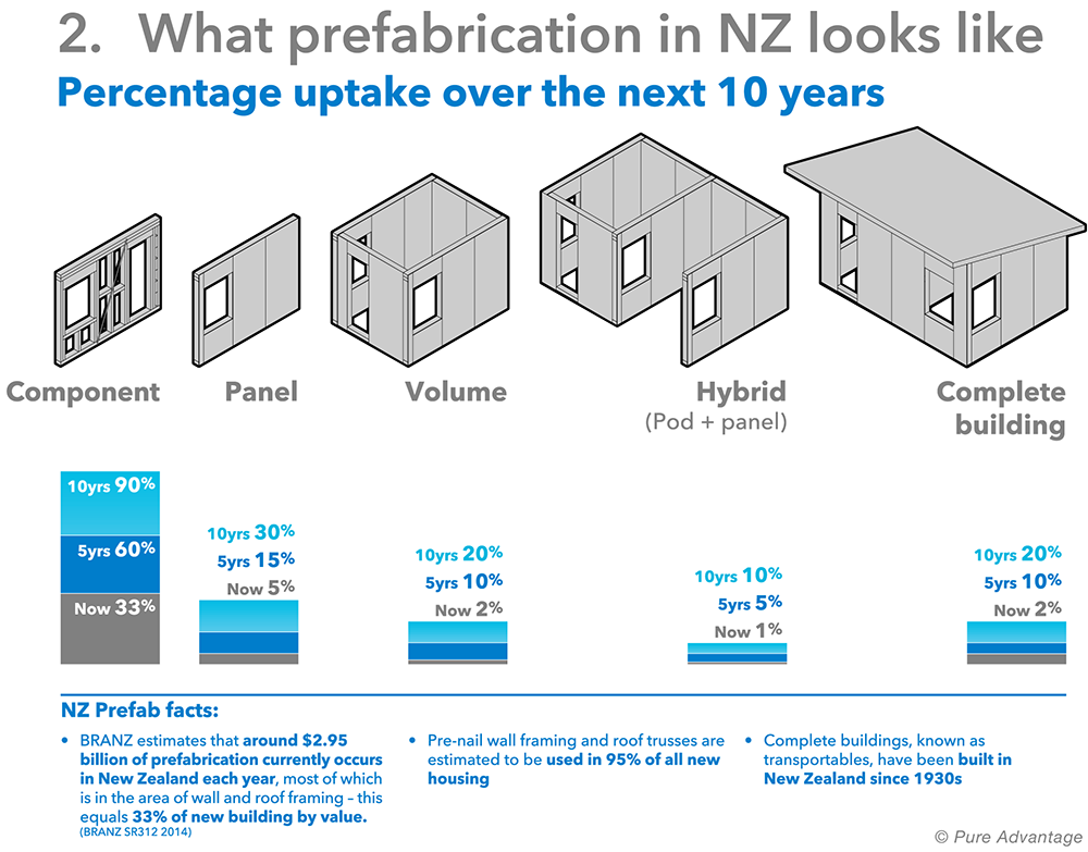 “We see an opportunity to reduce the cost of building houses in New Zealand, and to get them built more quickly,” says Pure Advantage trustee Phillip Mills. “There’s also huge opportunity when using prefabrication methods to build sustainably, and to insure that you’re building well insulated, low energy homes.”