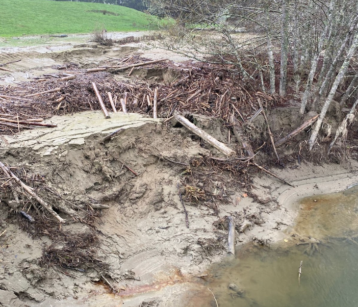 Silt and slash deposited by Cyclone Gabrielle, Waimata Catchment Taitrāwhiti.